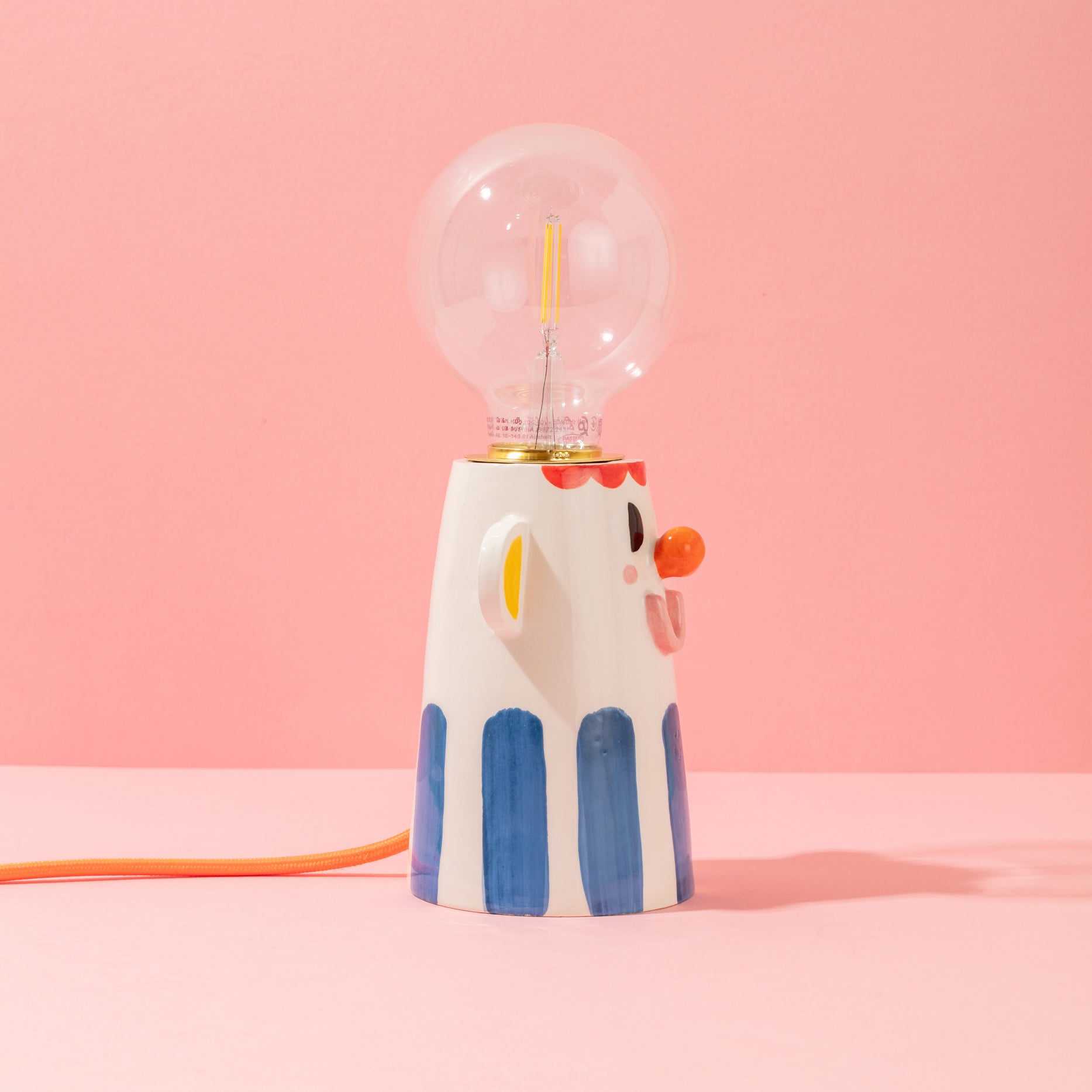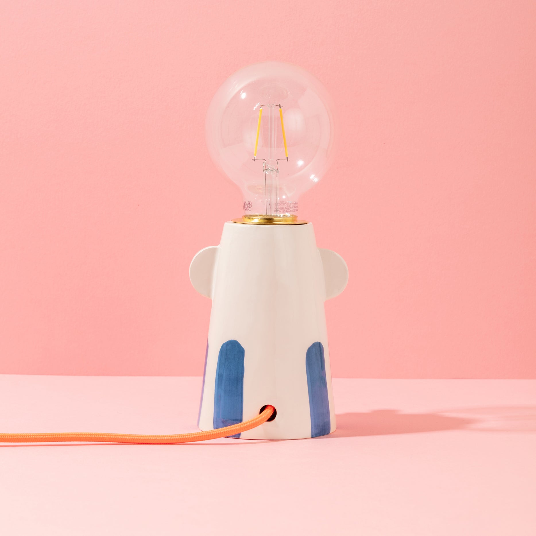 This Best Friend Lamp made with ceramic earthenware and hand-painted with engobes with a layer of transparent glossy glaze for a shiny look.