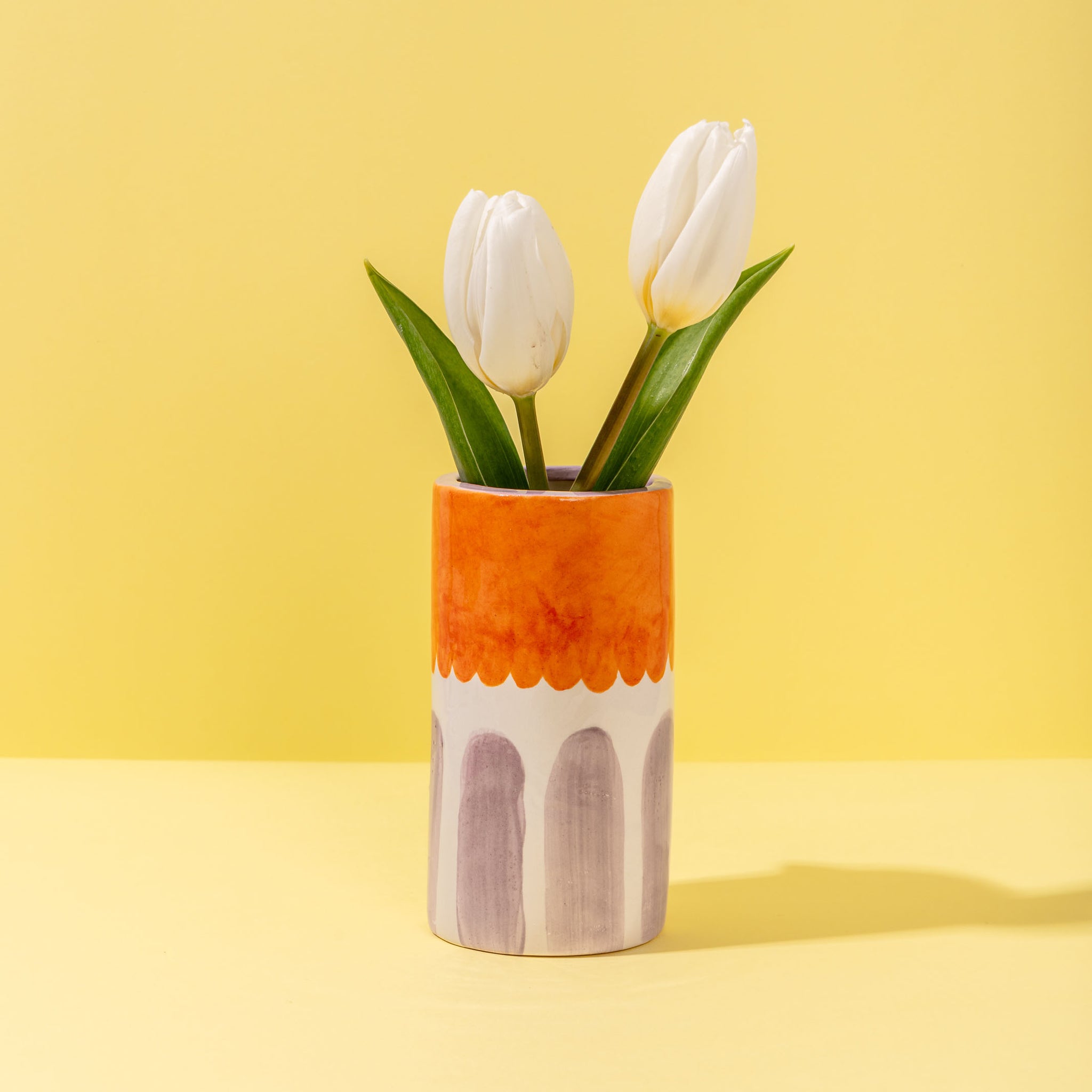 This decorative piece was made with ceramic earthenware and hand-painted with engobes with a layer of transparent glossy glaze for a shiny finish.